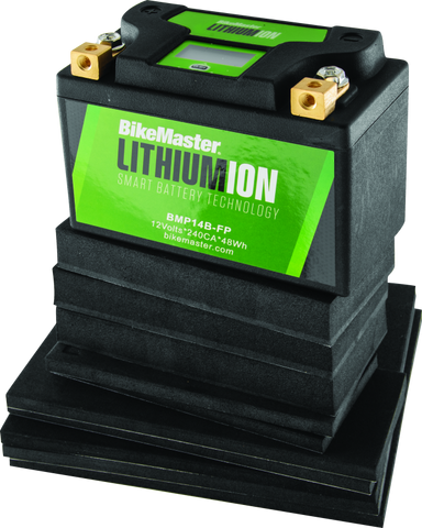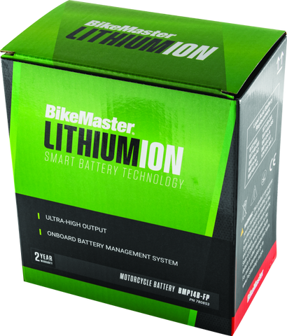 The most advanced high-power Lithium-Iron Phosphate battery technology available for your bike. BikeMaster® Lithium-Iron Phosphate batteries will provide you with ultra-high cranking amps and twice the service life of a conventional battery. At 1/3 the weight of a lead acid battery, these batteries contain no corrosive liquids and no heavy metals, making them environmentally friendly. All BikeMaster® Lithium-Ion batteries come with a two-year warranty.