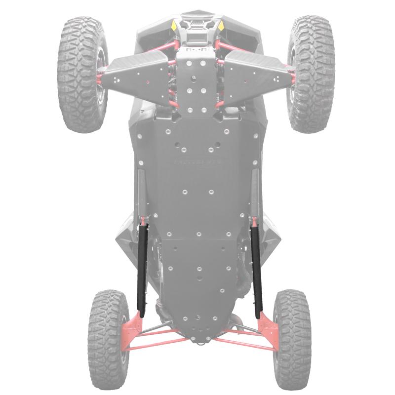 Factory UTV's Trailing Arm Guards for the Polaris RZR RS1 offer the best in trailing arm protection. These guards feature a molded design for a secure fit and are constructed from sturdy 3/8 inch UHMW plastic, ensuring your trailing arms are shielded from rough and challenging terrain.