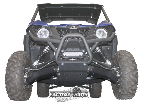 The Yamaha Wolverine R-Spec UHMW A-Arm Guards by Factory UTV offer unparalleled a-arm protection. These guards feature a molded design for a secure fit and are constructed from sturdy 3/8 inch UHMW plastic, ensuring your a-arms are shielded from rough and challenging terrain.