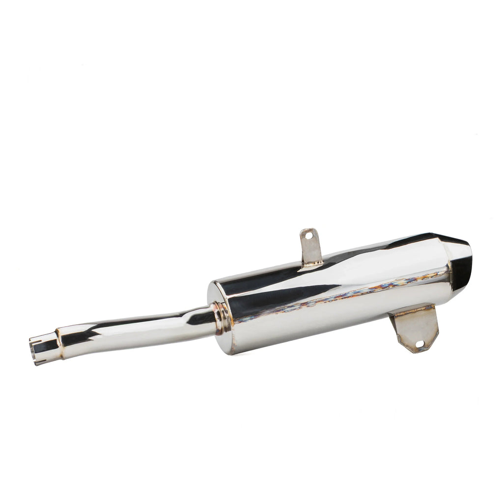 The RPM Sport Slip-On Muffler for the Suzuki King Quad delivers both aggressive performance and sleek design. This lightweight 3/4 slip-on system provides a deep, sporty exhaust tone specifically engineered for the King Quad. Internally baffled, the RPM muffler functions as a single-chamber system, enhancing sound and flow. Despite its reduced weight, it remains highly durable thanks to its fully TIG-welded, polished 304 stainless steel construction. Installation is quick and easy with all necessary stainless hardware included. A removable quiet core insert is also provided for customizable sound levels.