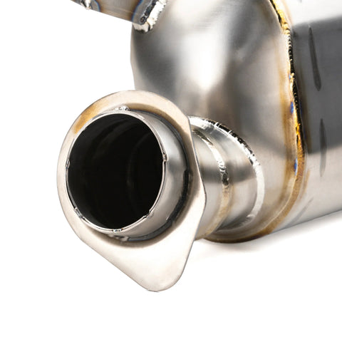 The RPM Q-Muf is a high performing, free flowing, mechanically chambered QUIET muffler. Only slightly louder than factory while providing HUGE gains in the performance and weight department. These mufflers are deigned by utilizing a series of pass though baffles and chambers to deaden sound while still allowing enough CFM & exhaust velocity through the whole system to not suffer ANY power loss while increasing throttle responsiveness! At WOT our mufflers are designed to load the chambers with exhaust flow and overflow CFM to the pass through chambers which will allow exhaust to more freely flow through when needed. With the throttle closed and drastically less exhaust flow, the exhaust will then return to flowing through the baffles and mechanical chambers providing a deep quiet sound. Our uniquely designed oval domed top and bottom muffler body's eliminate any hot spots or fume dead spots providing a smooth free flowing path of exhaust gasses. The mufflers internals are fully welded to provide absolute most durable construction. We did not skimp on ANY material including the fact that our mufflers have a snow plate which not only keeps snow out of the tunnel but FUMES out as well! The snow plate blocks fumes from being able to enter when the exit tip of the muffler is fully submerged in snow or taking snow impacts to the belly pan. The mufflers exit tip is also DUAL wall titanium allowing us to protrude the tip further than the competitors while still remaining worry free of dents, bends, or damage. All of our mounts are "over built" in order to never leave you frustrated & out of commission from lack of support or weak mounts. All of our chambered snowmobile mufflers are backed by a 3 year manufactures warranty.