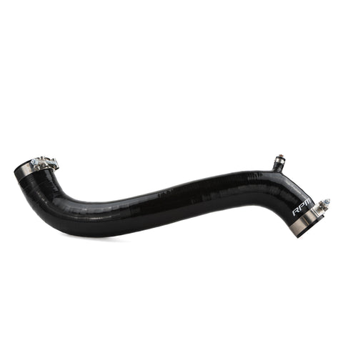 Unleash the full potential of your Kawasaki H2 with the RPM High-Performance Charge Tube Kit, a ground up redesign engineered to eliminate factory airflow restrictions and deliver unrestricted power. We've smoothed out the factory's harsh bends and radiuses, and directionally port matched the silicone at the intercooler and intake plenum to drastically increase air speed and efficiency. Built for extreme durability, these tubes are 6mm thick with 5 plies of fiber reinforcement, and further reinforced with our signature internal wiring to eliminate swelling even at the highest boost levels. The fluorosilicone lined first layer ensures superior resistance to heat, chemicals, and fuels for unmatched stability and longevity. The kit includes RPM's stainless 7mm wide T-Bolt clamps to replace the weak factory worm gear clamps, securing a reliable, high boost seal, and for future modifications, we've incorporated a capped 8mm boost reference port located 5 inches off the supercharger spigot, perfect for boost referenced accessories, making this the ultimate upgrade for your H2 induction system.