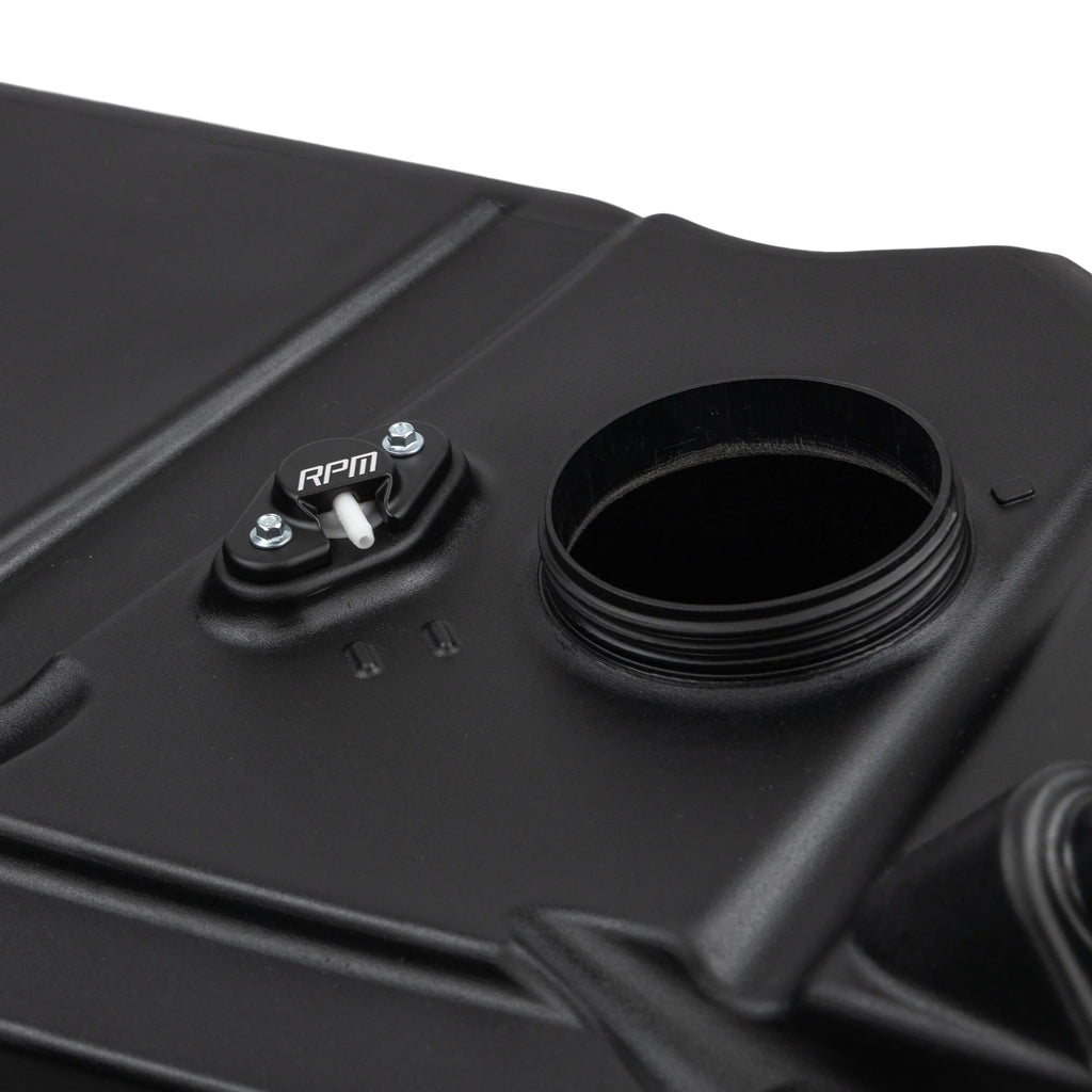 It's no secret that the Maverick R platform loves to drink fuel. Compound this with a tune adding more boost, or even E-85, and your MPG's are thrown out the window. RPM's precisely engineered, rotomolded, OEM replacement tank takes your fuel capacity from a measly 13 gallons to 19 gallons with out losing ANY dash pieces, no lost glovebox, and no re routing factory features. We even clearance room for the use of the factory Smart Control Module. This is a hassle free, clean installation that utilizes the factory fuel pump, breather line, factory tank straps, fill cap, seal, and factory fuel pump. The factory fuel pumps sensor still reads true and more accurate leaving your MPG worries in the dust. Tested and proven in Baja in not only the craziest of terrain & by the toughest racers also. Constructed from 7.5mm thick ethanol safe Rotomolded plastic, the RPM tank is drastically stronger than even the factory tank. A factory style roll over one way valve is secured with a 6061 billet retention block.