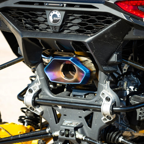 Turn up the styling on the rear of your Maverick R with one of RPM's custom tips. Available in Jet Black and Blued versions. These look awesome on any color machine. Our blued tip is a deep blue that fades to a golden yellow. Both Black & Blued are built to withstand the high heat these tips experience. These tips are a direct OEM Style replacement & will fit any muffler that utilizes the OEM tip. They will work with the OEM spark Arrestor. Built from 304 stainless!