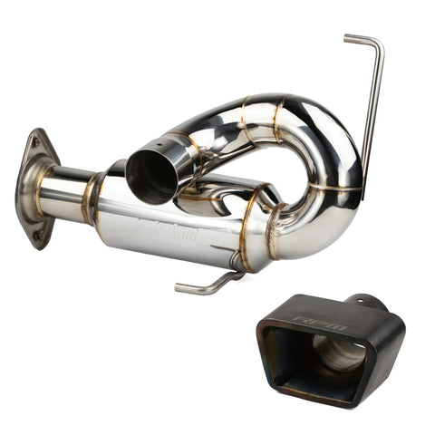 This is a 304 stainless FULL 3" catless sport muffler that utilizes a internally baffled perforated core. By utilizing not just a straight through muffler we were able to achieve a beautifully sounding exhaust tone while staying extremely light weight and retaining the use of the factory rear fascia. This is a full 3" out the tip design achieved by using the supplied, RPM designed, OEM appearing stainless 3" tip. Mounting is done by utilizing the factory hangers & brackets. The Sport Muffler lands in the middle of the "loudness chart" for our Pro R line up. Loudest being the Race Muffler, and nearest to stock sound would be the Chambered Muffler. If you're liking this muffler and want something a touch quieter we do offer this same set up in a DUAL Sport Muffler! The video at the bottom of this page compares all 3 to make your choice easy!