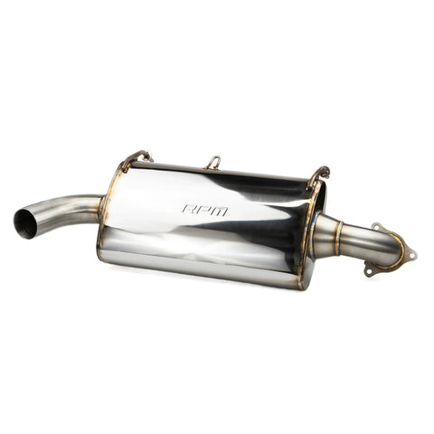 RPM's Sport Muffler lineup includes this beautiful stainless steel tig welded muffler for the RZR XP PRO's. This is a OEM Replacement slip on style muffler that retains all stock covers and hardware! This Sport Muffler provides a minimum 3HP gain on a stock machine. This is a huge power gainer for tuned machines and is required in our opinion for any machine doing a stage 2 or higher tune! This muffler will bolt to the stock or and RPM SxS E-Valve mid pipe. This is such a great sounding muffler that wont leave your ears ringing at the end of the day. Check out our YouTube video's for a great variety of sound clips! Best part is that we include a new upgraded RPM gasket AND new muffler hardware incase the problematic OEM muffler hardware fails!