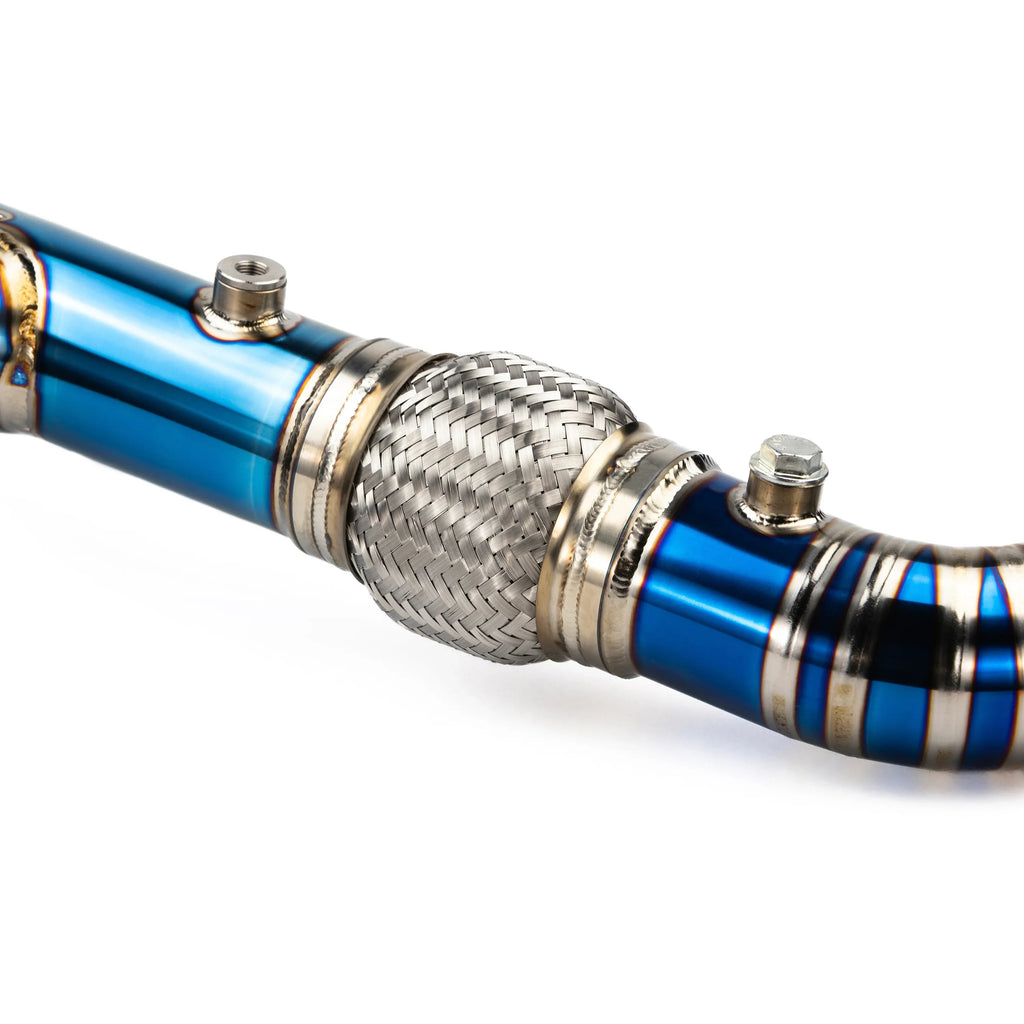 The 3" TI E-Valve gives you the option to run a stock muffler, and at the flip of a switch you unleash extra horsepower, 500+ more RPM's, and a deep sporty exhaust tone! Switch it back closed and you have a quite stock sounding machine! Unlike some, our dump valve system has a smooth transition from the mid pipe to the valve allowing for the smoothest and free flowing dump valve exhaust on the market. As it passes the 3" valve the exhaust gasses will flow out our signature & beautiful fish tail tip! If you're running a data logger or accessory that requires a second O2 bung have no worries, all RPM SxS mid pipes come standard with a 2nd O2 bung at no additional cost.