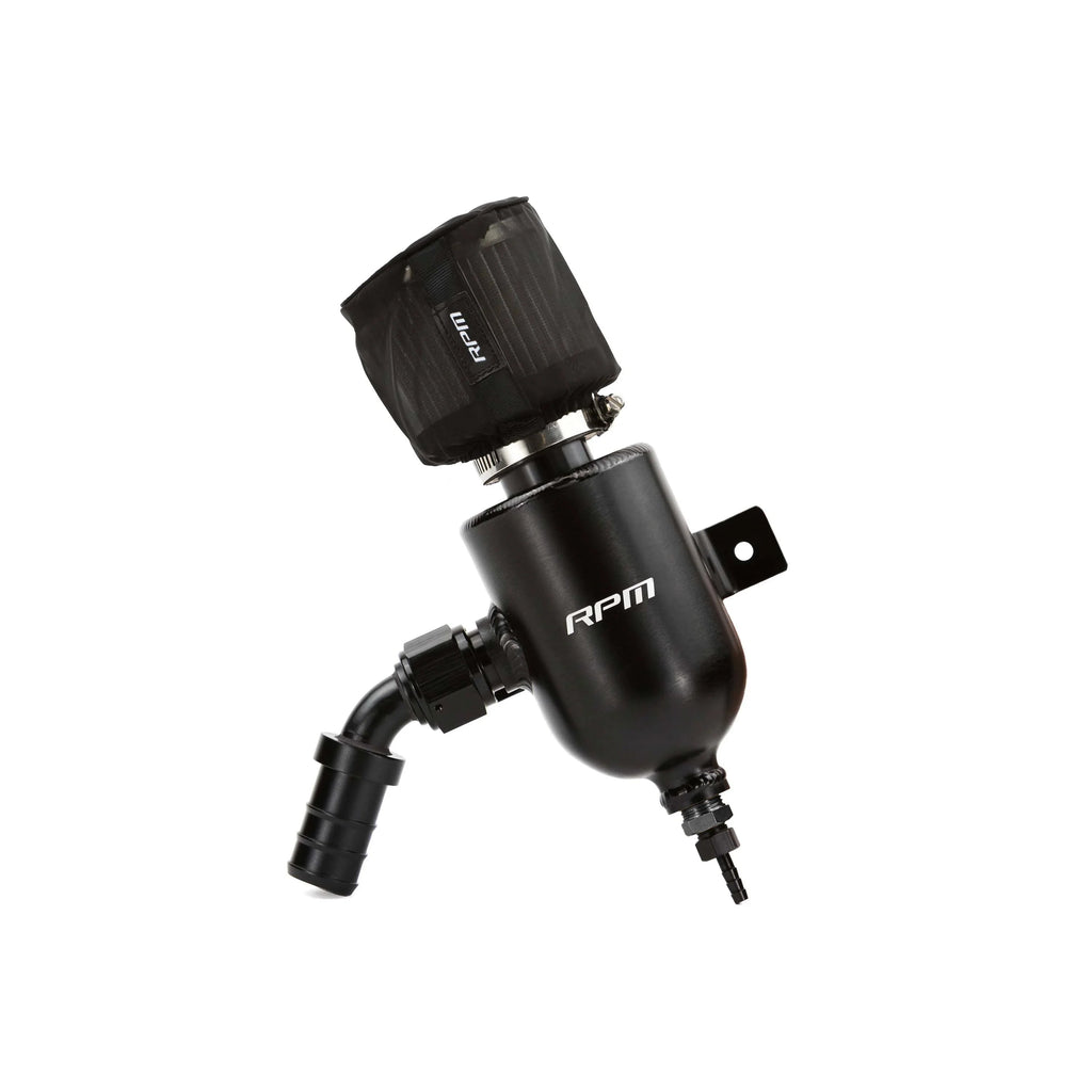 The RPM SxS Catch Can is all aluminum and fully chambered oil catch can built to provide the absolute best performance! Designed to mount directly to the bed and use the factory crankcase breather to allow for a simple and quick install! A pre filter is included to keep dust and debris free from the crankcase breather filter as well. The use of our 12-AN fitting makes installation clean and allows for easy removal for maintenance later on. Our o-ring sealed drain valve makes emptying the catch can easy and leak free during operation. This kit includes a silicone hose to replace the problematic factory crankcase hose along with all hardware needed for installation.