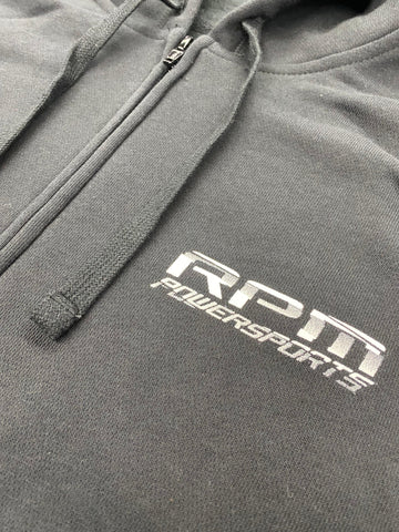 Zip Up hoodie with RPM Powersports Logo on the chest and " Broken Up " RPM Powersports logo on the back. SporTek Hoodies that fit awesome and are built with quality in mind!