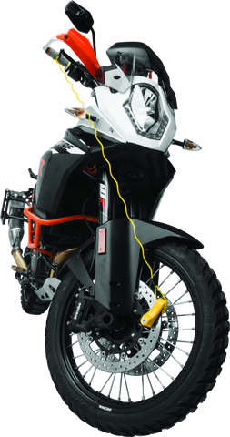Lightweight, easy-to-pack, yellow coiled cable from Bully Locks™ features two-looped ends, one for disc lock the other for handgrip so you never ride off with your disc lock on your brake rotor again. Two looped-ends; one for disc lock, the other for handgrip.