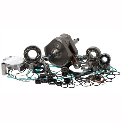 Convenient one-stop shop in a box; nearly all components required for a complete and professional rebuildVertex piston kit (standard compression piston, rings, pin and clips)Hot Rods heavy duty crank (stock strokeincludes wrist pin bearing for two strokes)Hot Rods main bearing/ seal kitHot Rods transmission bearing kit (includes transmission bearings, output shaft collar and sprocket lock washer)Hot Rods counter balancer bearing kitHot Rods water pump bearing and seal kitVertex complete gaskets kit, including seals and O-ring kit (covers top and bottom)